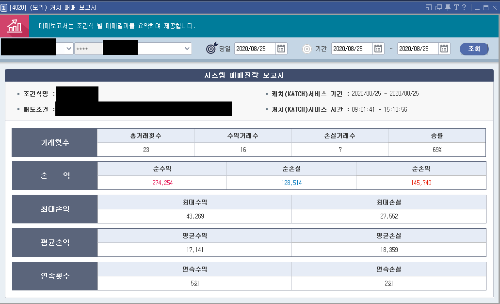 키움증권에서 제공하는 서비스 중 하나로, 조건식을 작성하면 그 조건에 맞는 종목들을 포착, 자동 매수/매도를 해주는 시스템입니다. 요즘 굉장히 주식이 핫한데, 직장인이나 대학생 등 장중에 시간을 내기 힘든 분들은 모니터링을 할 수 없다는 단점이 있습니다. 이 단점을 커버해주는 시스템으로, 오히려 개인심리에 영향받지 않고 기계적으로 매수매도가 가능한 것이 캐치의 장점이라고 할 수 있습니다. 단점으로는 캐치 서버의 시간이 약간 차이난다는 것과 모델을 꾸준히 검토하지 않으면 예상하지 못한 부분에서 손실이 난다는 점 등이 있겠습니다. 따라서 자동매매를 하시고 싶으신 분은 모의매매 기능이 있으니 모의매매로 꾸준히 모델을 검토하고 실전매매하시기를 바랍니다. 저도 오늘부터 모의매매에 관한 일지를 써나갈 계획입니다.