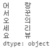 s2=pd.Series(data=['랑','꾼','의','리','뷰'],index=['어','서','오','세','요'])